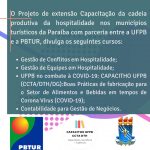 O Departamento de Turismo e Hotelaria com o Departamento de Gastronomia e Departamento de Finanças e Contabilidade da Universidade Federal da Paraíba (UFPB) em parceria com a PBTur (Empresa Paraibana de Turismo), estão oferecendo 4 cursos, por meio do projeto de extensão Capacitho – Capacitação da cadeia produtiva da hospitalidade nos municípios turísticos da Paraíba. Ao todo estão sendo abertas 40 vagas para cada curso para profissionais das aéreas e pessoas da comunidade que têm interesse em atuar no setor de Hospítalidade.
