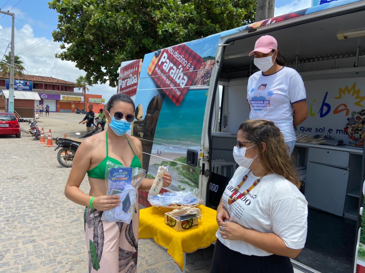 “Os turistas que visitam a Paraíba conhecem com surpresa todos esses roteiros e, certamente, acabam retornando para passar mais tempo possível para fazer novas visitas, ter novas experiências por aqui”, pontuou Ruth Avelino. Foram distribuídos 100 kits com mapa, máscaras folder e viseiras.