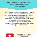 O segundo curso oferecido pelo Projeto Capacitho é o de Gestão de Mídias Sociais para Meios de Hospedagem. Durante as aulas serão abordados temas como Hospitalidade; Conceitos de Marketing e Vendas; Passos para uma Gestão de Mídias Sociais; Planejamento; Programação; Design e criação; Produção de conteúdo; Atendimento e gestão; Habilidades de um gerente de mídias; Estratégias essenciais; A correta utilização de anúncios; Doze mandamentos para um planejamento de mídias; Avaliação dos resultados. As inscrições podem ser feitas, a partir de 18 até 30/10/2021, e estão reservadas 40 vagas.