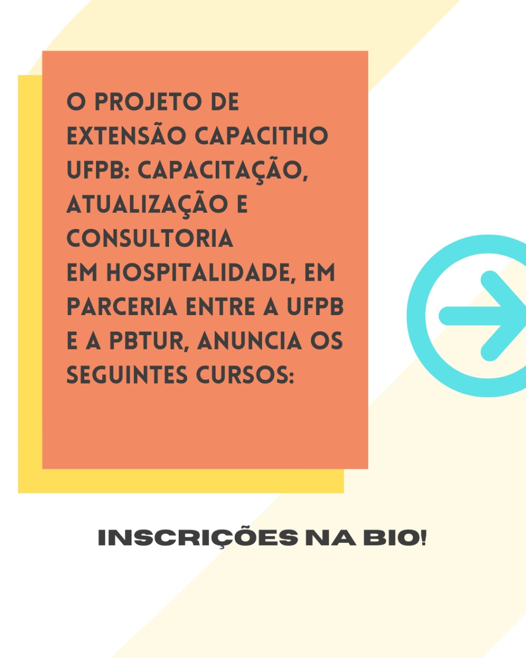 Tem início na próxima segunda-feira (6), a partir de João Pessoa, as inscrições para o Curso de Capacitação, Atualização e Consultoria em Hospitalidade para profissionais do Turismo e pessoas da comunidade que atuam ou têm interesse em atuar no Setor de Hospitalidade.