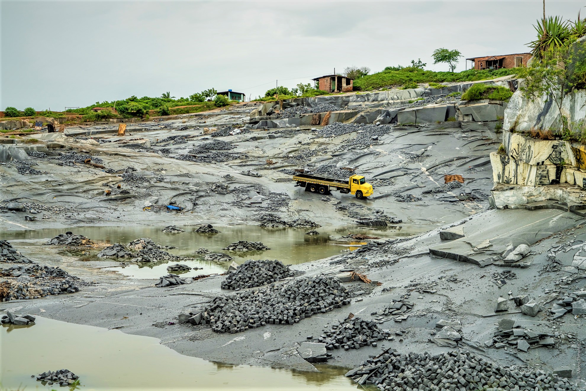 Pedreira, trabalho medieval e grafite – Além dos novos roteiros criados e oferecidos aos turistas, Dona Inês tem dentro do seu perímetro urbano uma velha pedreira que lembra Serra Pelada, que existiu na região norte do Brasil entre 1980 a 1983. São famílias que sobrevivem da extração de granito. Se em décadas passadas a cidade viveu ciclos econômicos a partir da produção, beneficiamento e comercialização do Sisal e da farinha, atualmente o principal gerador de empregos é a extração e venda granitos e seus derivados. O secretário de Cultura e Turismo, Josenildo Fernandes, relata que a extração de granito faz parte da rotina da cidade, envolvendo mais de 400 famílias. Ele conta que várias administrações municipais tentaram, de alguma forma, melhorar as condições de trabalho na pedreira, mas que sempre encontraram oposição dos próprios trabalhadores. Para registrar a importância da pedreira na história da cidade, um grafiteiro pintou imagens que contam como surgiram os primeiros moradores de Dona Inês. “Ao pintarmos o bloco de granito mais elevado da pedreira, o fizemos para mostrar como a extração gerou um fosso com centenas de metros de profundidade. Nesse imenso bloco nós contamos nossa história a partir dos relatos orais dos mais velhos”, relatou.
