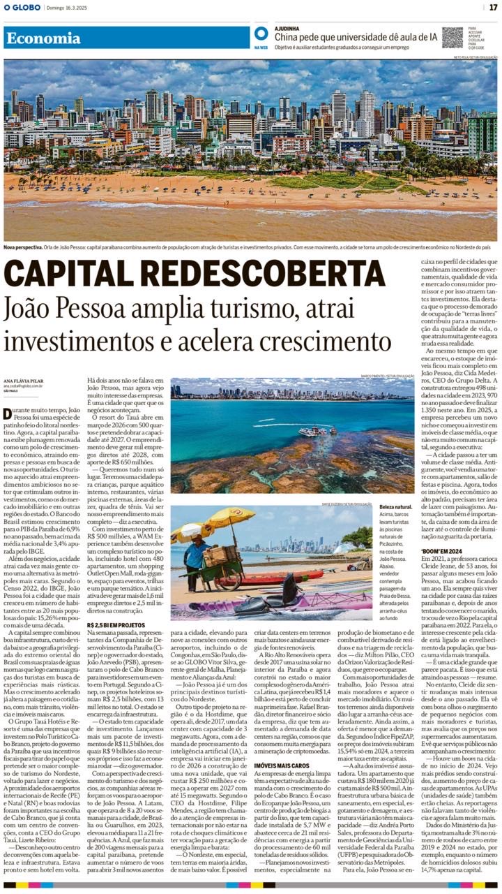 Com a chamada de capa “Nova joia da coroa do Nordeste”, a reportagem da jornalista Ana Flávia Pilar destaca as qualidades de João Pessoa, como suas praias de águas mornas e cristalinas, excelente infraestrutura e um custo de vida acessível. A cidade, que tem experimentado o maior crescimento populacional entre as 20 mais populosas do Brasil, vem atraindo tanto turistas quanto investidores, impulsionando a economia local.