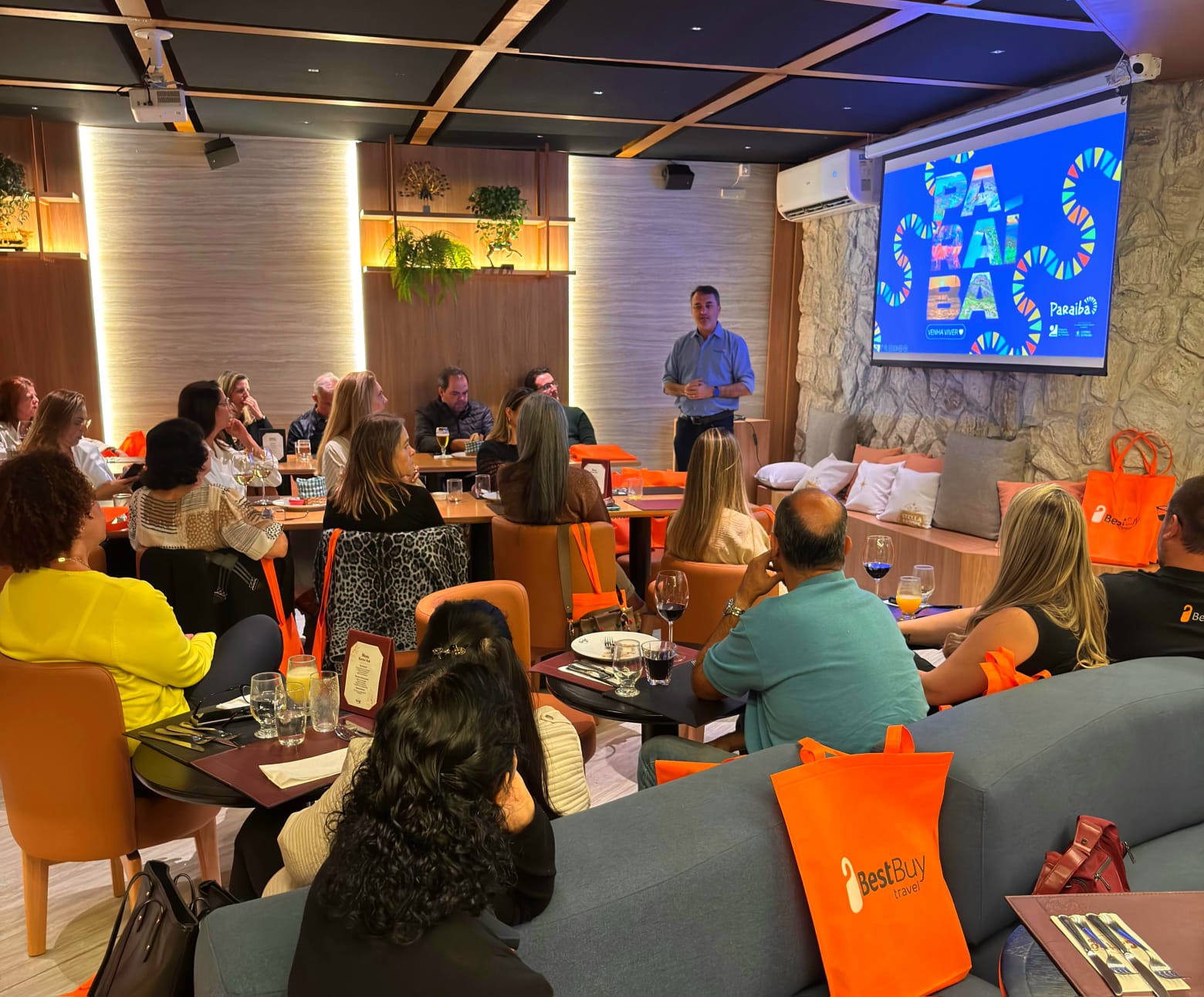 A Paraíba reforçou sua estratégia de promoção turística ao realizar, nesta segunda-feira (18), o Workshop Imersão Paraíba na capital mineira. A ação, promovida pela Empresa Paraibana de Turismo (PBTur), Secretaria de Turismo e Desenvolvimento Econômico (Setde) e ABIHPB, capacitou pela primeira vez 70 agentes de viagens de destaque da operadora BestBuy, do mercado mineiro, com o objetivo de ampliar a visibilidade do destino e impulsionar a comercialização de pacotes turísticos para o estado.